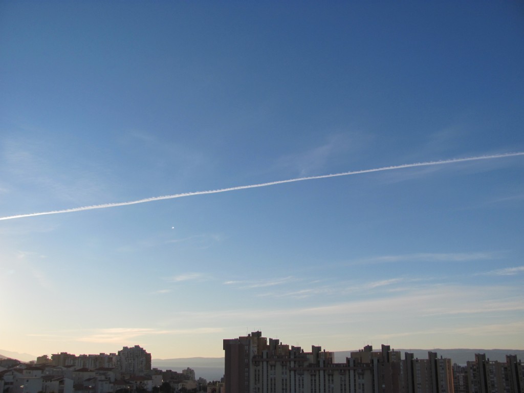 Rano ujutro sam uhvatio par snimaka chemtrailova, pa ih postam. Inače sugrađanin je poslao novu ediciju fotki iz zapadnog dijela grada, kvarta popularnog zvanog Kineski Zid, pa da vidimo što je on uslikao (ne nužno na ovaj datum).