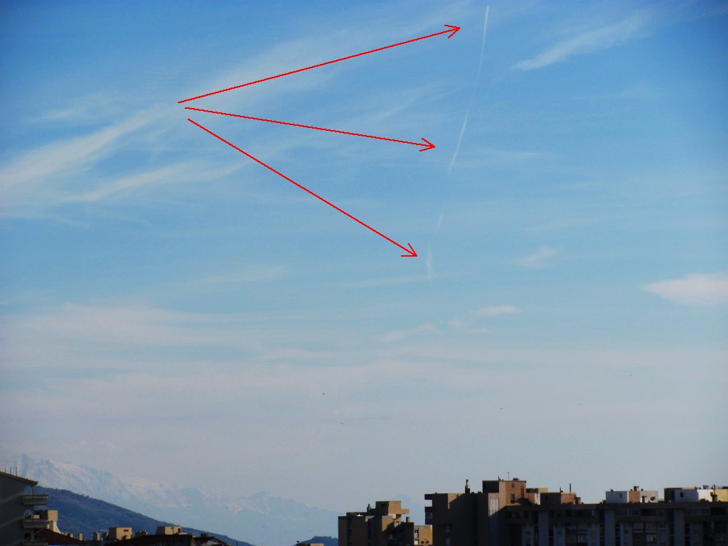 Osvanula je lijepa nedjelja, malo je zatoplilo, snijeg se zabijelio na Mosoru, pravi fini zimski ugođaj, ali avaj, evo i ubojice čovječanstva na nebu. Cijeli dan su sipali svoj otrovni teret po nama. Nisam imao volje, a ni vremena detaljno uslikati svaki prelet, nego sam tu i tamo tijekom cijelog dana s mojim 'wideangle' aparatom probao uslikati najzanimljivije momente. Žalosno je kako postoje ljudi, koji smatraju da su ovakvi gusti tragovi aviona normalni, ali mislim da nas je sve više 'svjesnih'.