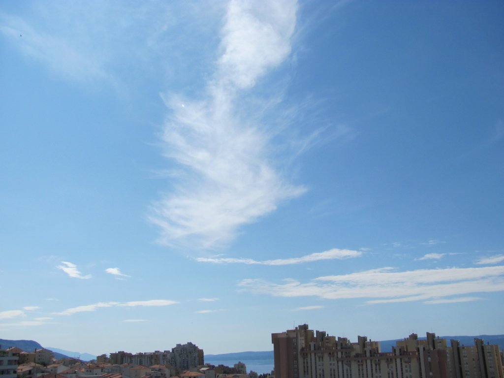 Malo su se muvali pravi oblaci, malo ostaci kemijskog zaprašivanja. Pravi oblaci su se formirali u neprirodne pruge usljed djelovanja 'cjepkajućeg' signala HAARP i ostalih sličnih EM uređaja kojima nas zatupljuju 24/7. Međutim, između svega toga, tu i tamo su mogli uočiti mali elementali zraka kako rade svoj posao: jedu kemijske oblake. Pozdrav, mali naši prijatelji, naša srca su uz vas.