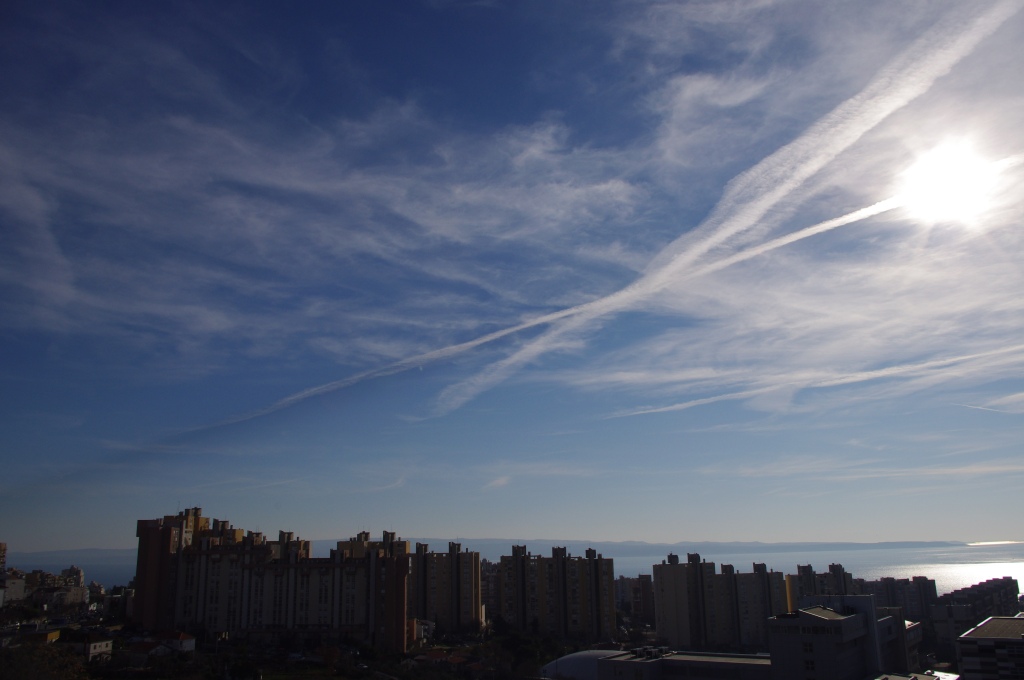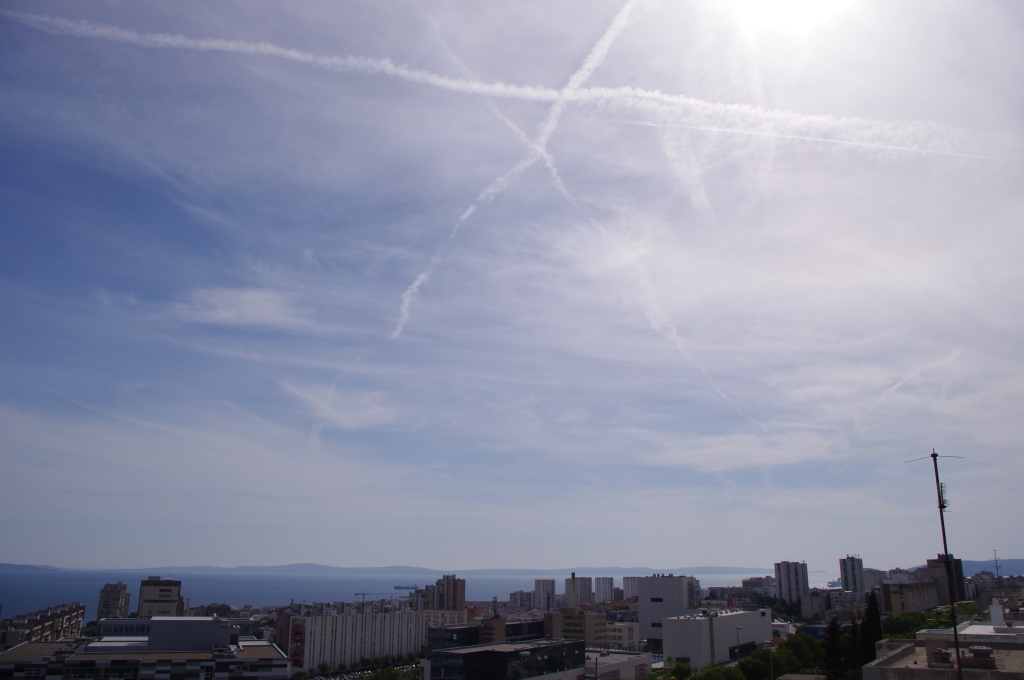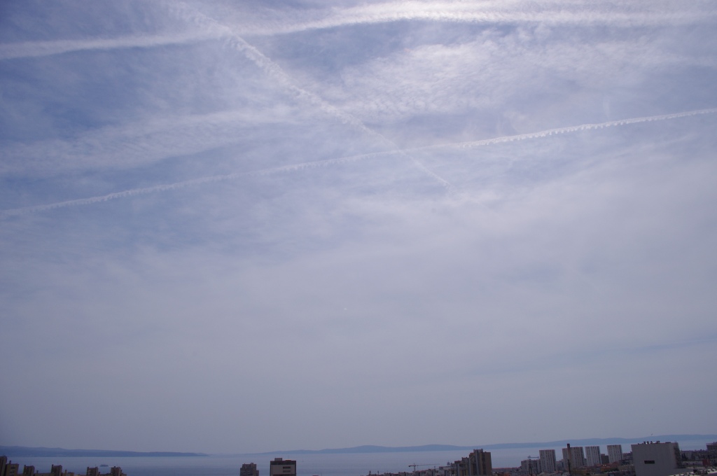 Chemtrail slike uhvaćene objektivom kamere tijekom 2013.g. Ovdje bih istakao kuglaste oblake u obliku diska koji baš ono podsjećaju na neke svemirske brodove, a po mom mišljenju uistinu se i radi o eterskim (malo izvan naše fizičke dimenzije) vanzemaljskim brodovima koji u rijetkim trenucima mogu biti uočjivi kad vjetar doslovno 'zalijepi' oblak na njihov energetski potpis. U trenucima rijetke sreće, imao sam čast da budem svjedokom jedne dvostruke duge te niz pojava malih zračnih elementala, Sylphova koji pomažu nama i majci Zemlji da očistimo sebe, nebo i zemlju od niskih vibracija. Na par slika sam uočio i tzv. 'rainbow' odbljesak od chem-oblaka, ovo je posljedica odbljeska sunčeve svjetlosti od raznih metalnih čestica, smartdusta u oblacima. Sjećam se da su ovu pojavu učestalo zabilježili u nekim područjima prije snažnih potresa, najvjerovatnije izazvanih HAARP-om.