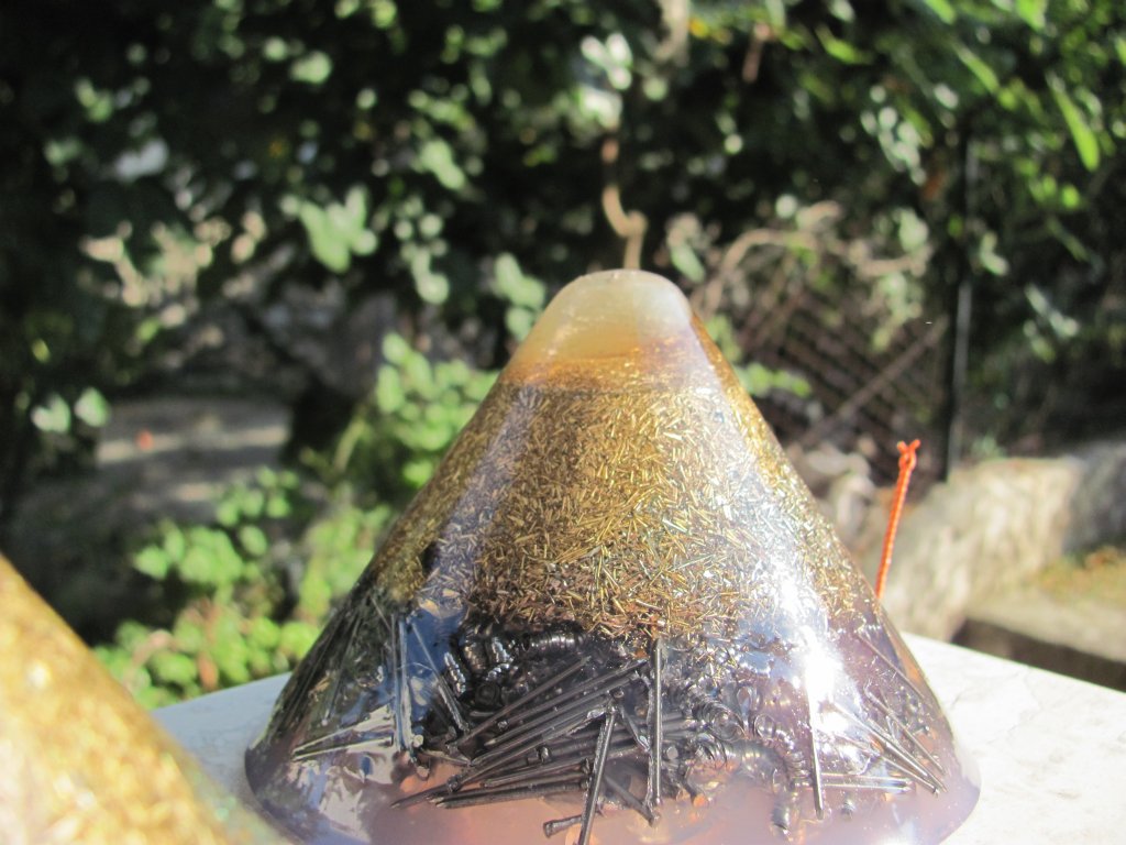 Nabavio sam koktel čaše i naumio da napravim svoje prve plastične HHG-ove, ali s dva extra dodatka: kristalom na vrhu stožca i s špicama gorskog kristala oko kojih je namotana tzv. Mobius zavojnica koja se spaja na zapper te energizira kristal i cijeli HHG pojačavajući njegovo djelovanje. Malo ambiciozno za prve HHG-ove od poliestera, ali s obzirom na 'jaku konkurenciju' ekipe s foruma, a i s obzirom na višemjesečno iskustvo u izradi orgonita, smatrao sam da sam dorastao zadataku, što se naposljetku pokazalo istinitim.