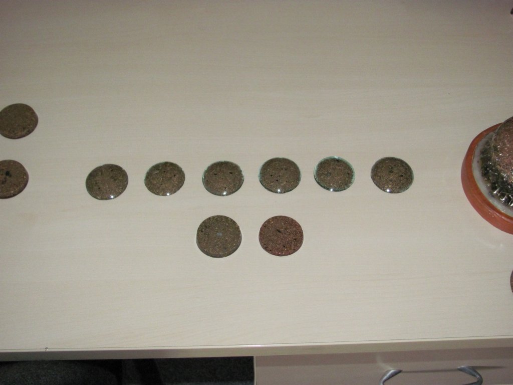 Slike pokazuju izradu Mobius coila i HHG-ove. Od viška smole čak sam napravio i jedan mali TB. Kasnije sam umijesio i oko 12 tankih okruglih epoksidnih botuna koje sam mislio dati ekipi za na mobitele, ali su bili preveliki, pa sa im ih prenamjenio u privjeske i botune za rutere, monitore, računala i tako dalje. Mislim da sam ih večinu podijelio. Slike tegle pokazuje neuspjeli TB. To je bio moj prvi pokušaj miješanja poliesterske smole, kad sam stavio malo katalizatora (aktivatora) i TB se nažalost nikada nije stvrdnuo. Puknuto svrdlo ukazuje da i mesing može biti zafrkan za mljevenje.