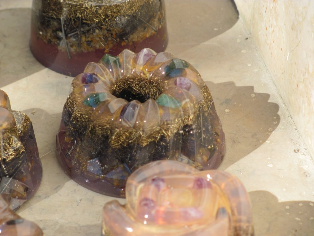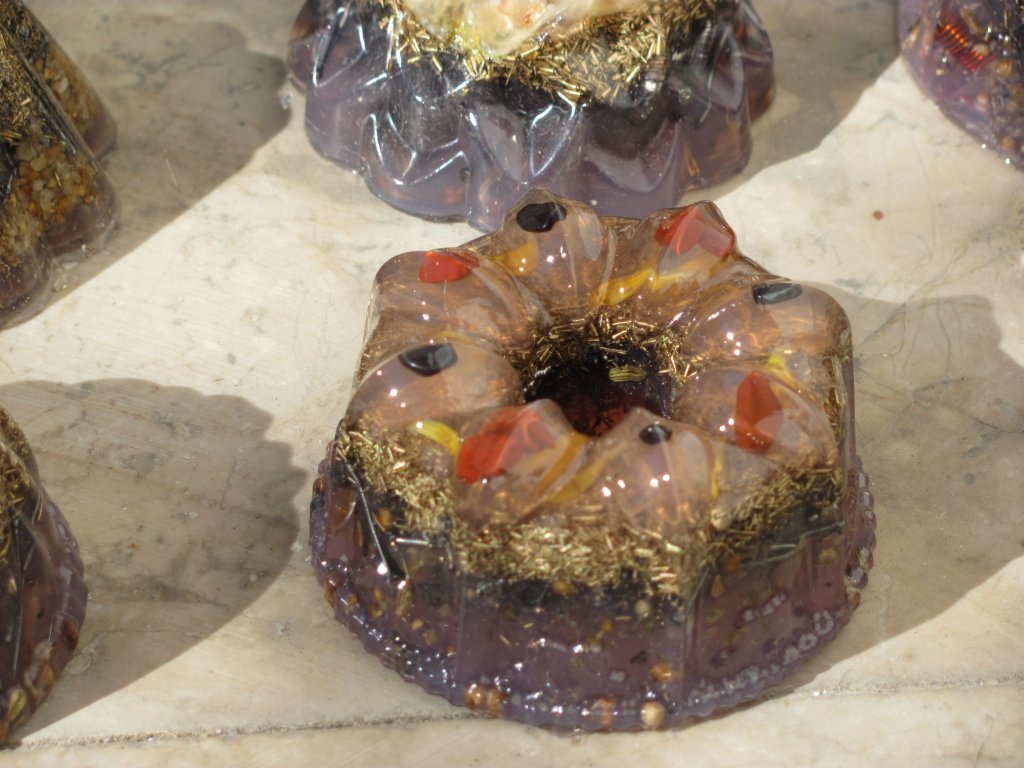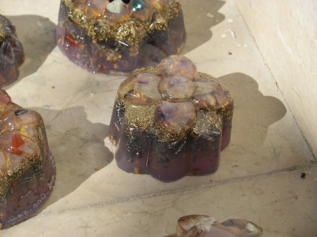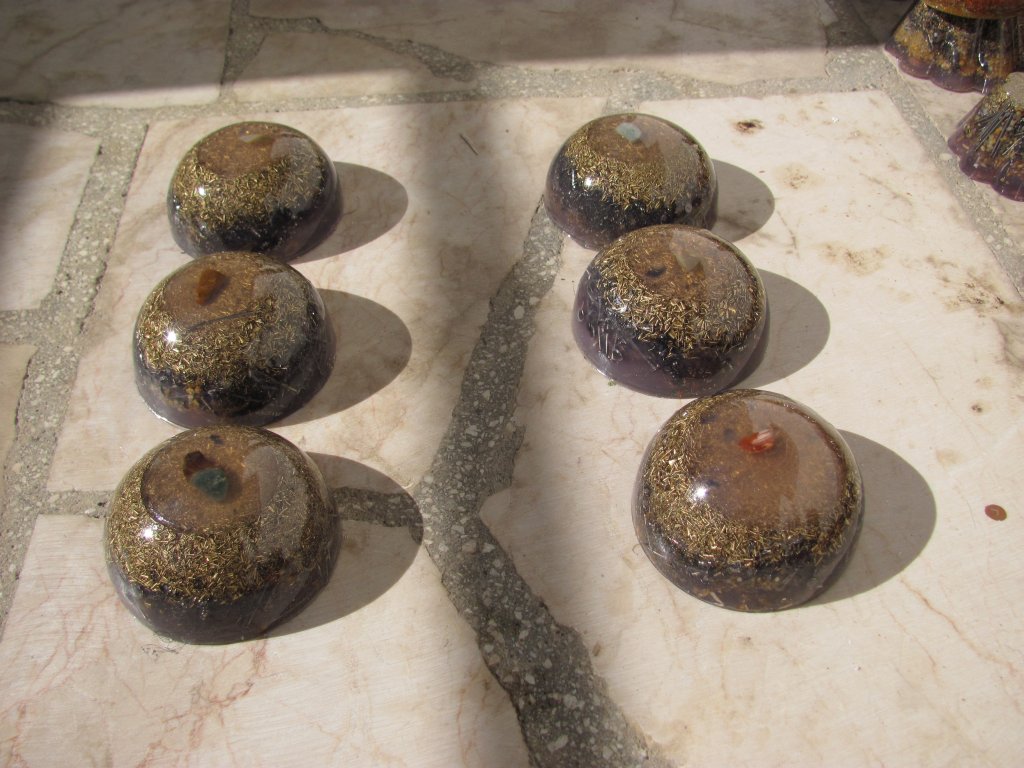 Neveni su zasjali na suncu, a meni je sinula ideja da stavim latice u TowerBustere i da ih tako malo uljepšam. U 12 TB-ova sam stavio sam latice nevena, kadulje i ostalih cvjetova s kristalićima na vrhu. Međutim, usljed topline koja se stvara kad smola stvrdnjava, izgubila se boja latica, a poliesterska smola se inače dosta zamuti i nije tako prozirna kao epoksidna, tako da nije ispalo baš naj naj, ali svakako bolje nego 'obični' TB. Ovih 12 sam namijenio za po kući, međutim, danas kad gledam, ostalo mi je 6 komada što hoće reći da sam ih pola dao. Inače skoro 80%, ako ne i više orgonita dajem rodbini, prijateljima, susjedima, tako da i na taj način 'giftam' okolinu.