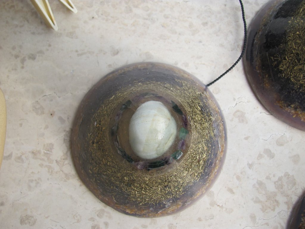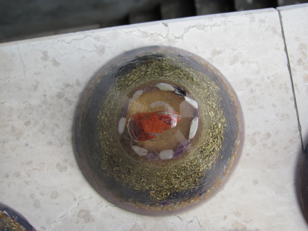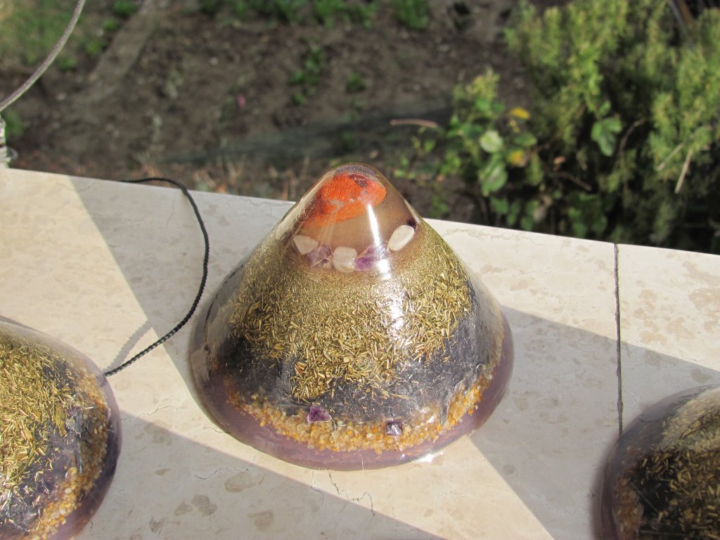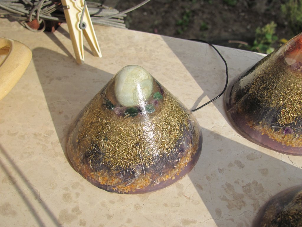 Skuhao sam nova četiri poliesterska HHG-a. Zanio sam se s epoksidnom smolom i s njom sam napravio vrhove ovih HHG-ova. Normalno epoksid se lijepi kao lud na staklene čaše koje koristim kao kalupe. Na svu sreću, postoji jedan fini trik s 'tvrdoglavim' kalupima koji 'ne puštaju' orgonite vanka: ostave se preko noći u friz i s laganim tuckanjem trebali bi izaći sutradan. Meni je to uspjelo s tri komada, ali četvrti se nije dao i puknuo sam čašu u nastojanju. Orgonit je izašao, čaša je skoro ostala čitava, jer je samo nogica pukla, pa je i dalje mogu koristiti. Savjet: epoksid nikako u staklene kalupe, a ako imate problema s vađenjem orgonita iz kalupa ostavite ga u friz preko noći, imate 90% šansi da bezbolno izađe.