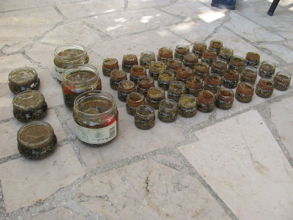 Stare tegle je trebalo 'reciklirati' u okoliš. Šećer je rastopljen, kristal i metal su dodani i paf, dobio sam oko 44 šečernih TB-ova. Ove s čepom sam začepio čepom i zalijepio ga, a ove bez čepa sam prekrio silikonom. Sve sam stavio u kesu i pravac Marjan. Istega sam jaja, noseći kesu od skoro 10 kila kao pravi mandrilo po Marjanu, ali dobro, što ću, kad me srce vuče, moram ga slušat. I tako lutao sam po šumi i giftao svoja sveta mjesta za sungejzing, te spomenik Đirometi, talijanske bunkere iz WWII te malo pobacao oko digitalnog odašiljaća kraj ZOO-a. Mislim da je ovo bio dobar posao.