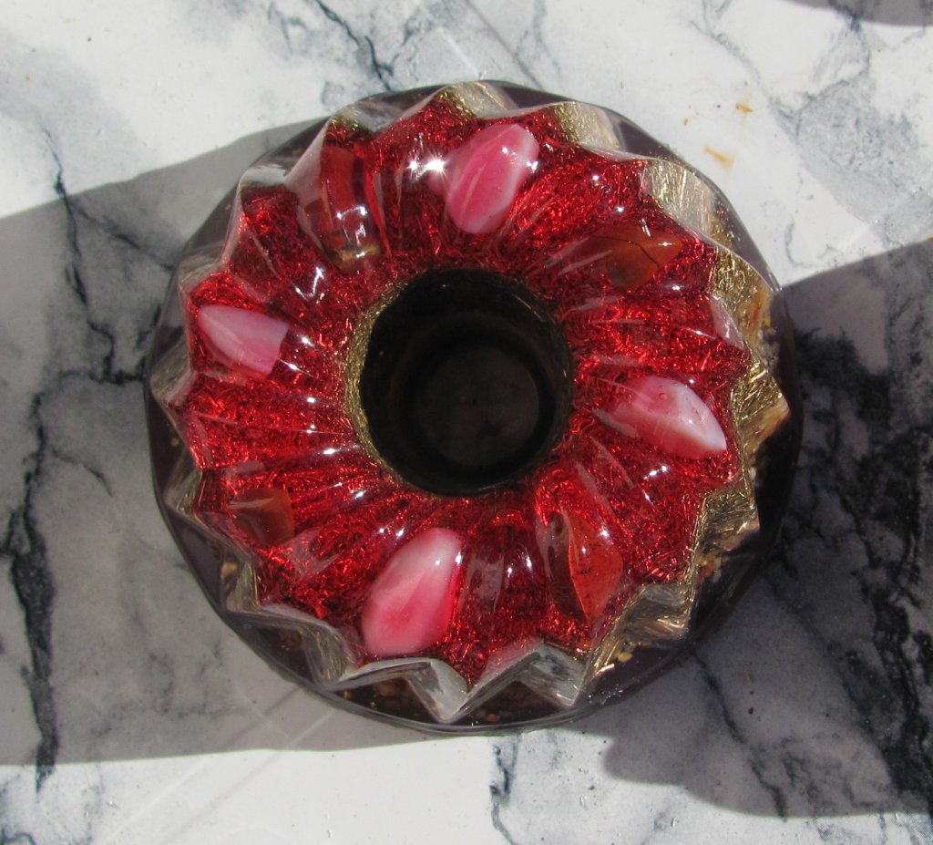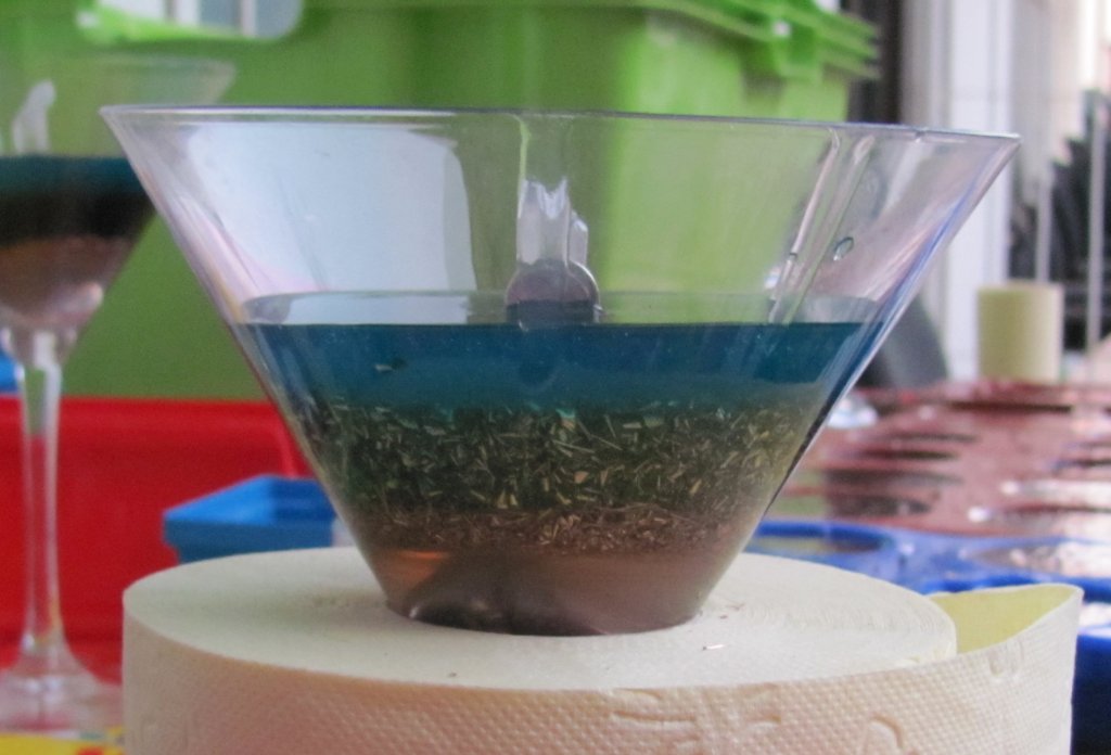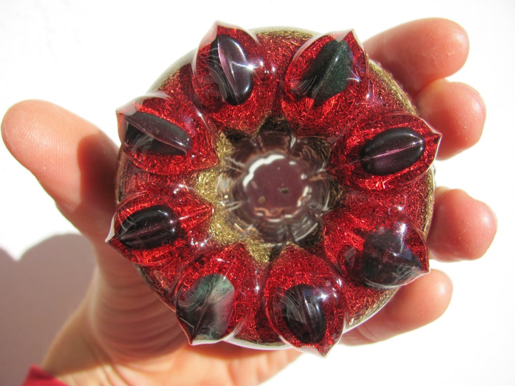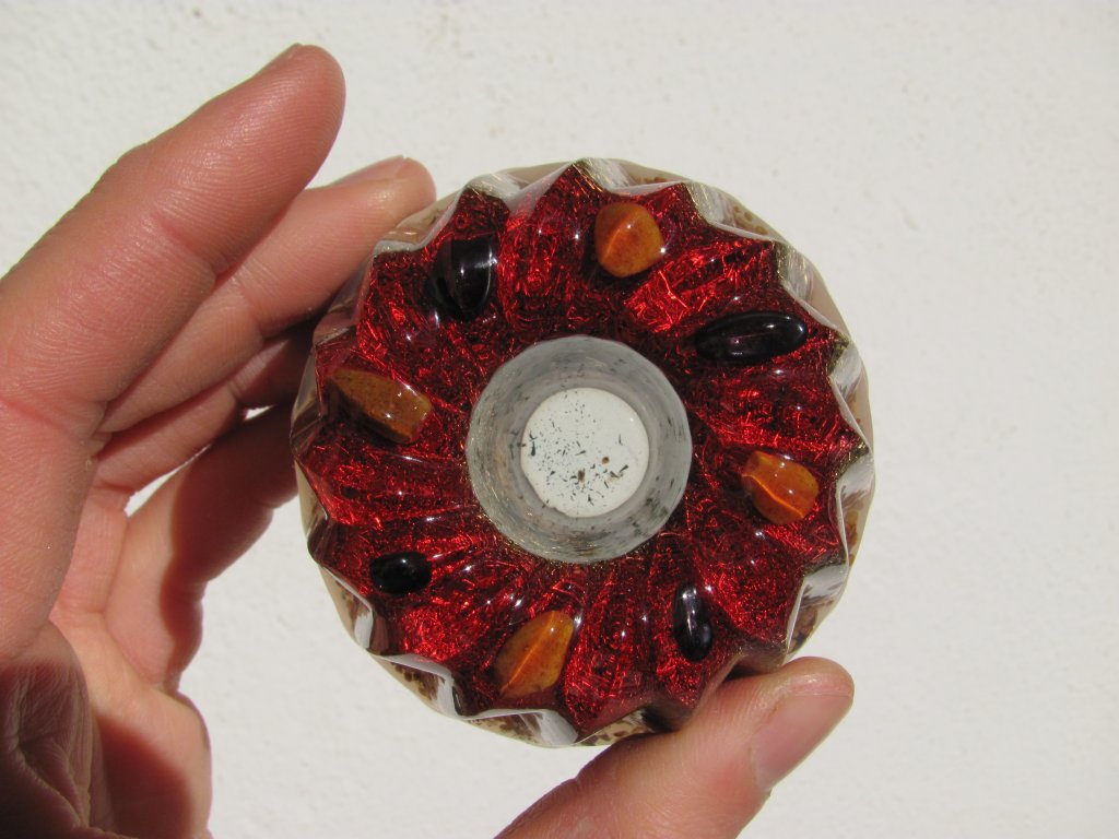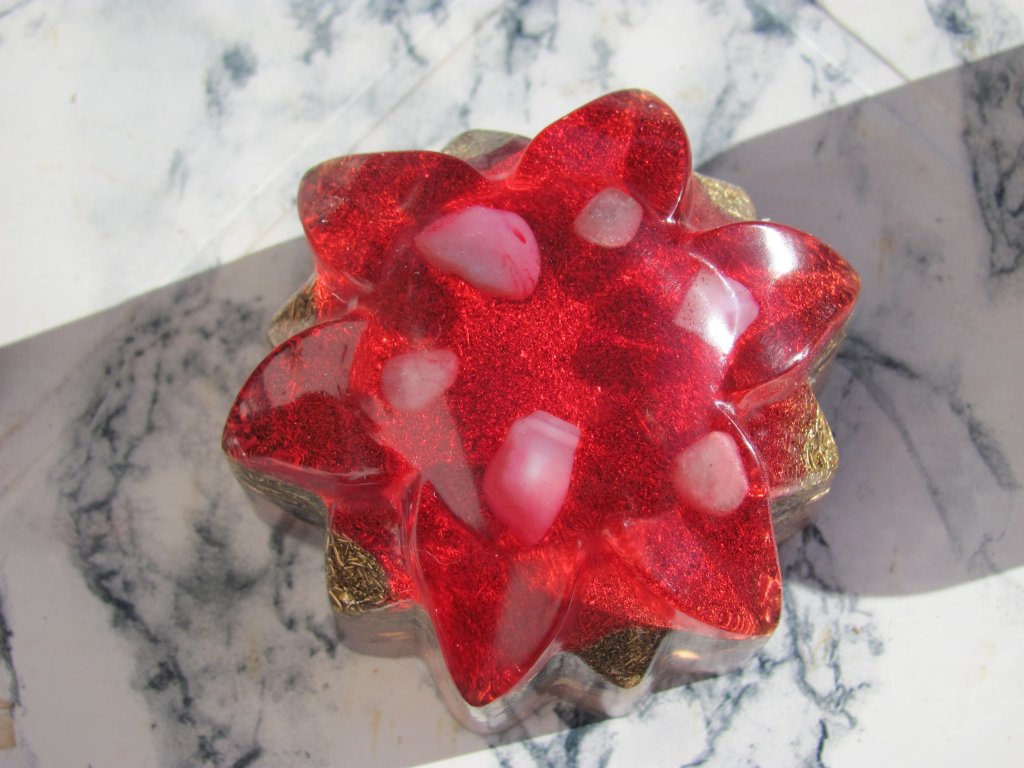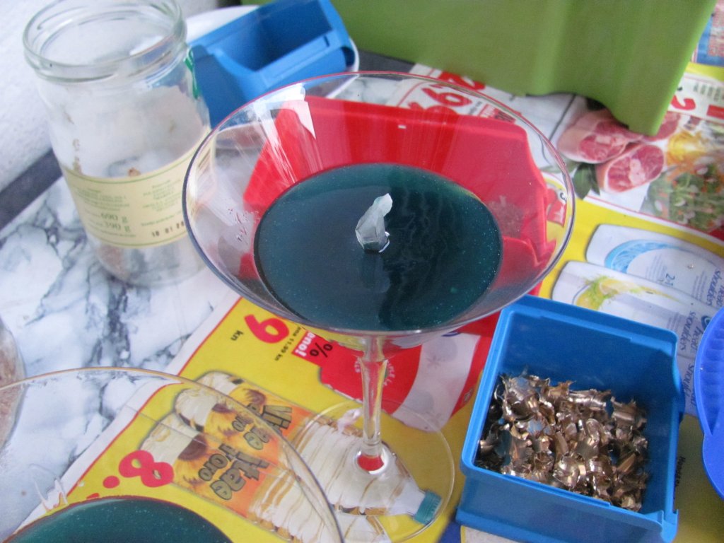 Inače zanimljiva je ova poliesterska smola koju nabavljam u splitskog Kemilaka: kad je neaktivirana onda je plave boje, kad se aktivira onda promijeni boju u zelenkasto-smečkastu, a kad se stvrdne onda postane rozasta. Kao da prolazi kroz cijeli spektar. Savjet orgonit-novacima: kad miješate smolu i aktivator odnosno kad aktivirate smolu, tek kad ona počne mijenjati boju onda znajte da ste dovoljno miješali, prije toga nemojte stati s miješanjem. Ja inače vrtim s kutlačom bar 3-4 minute dok smola ne promijeni boju i dok se pojavi bezbroj malih mjehurića u smjesi, onda znam da je smola sigurno aktivirana.
