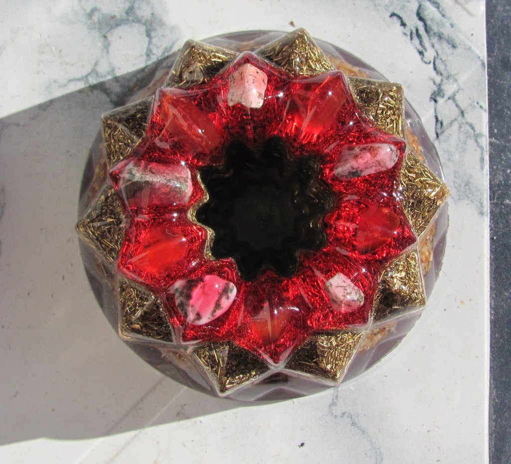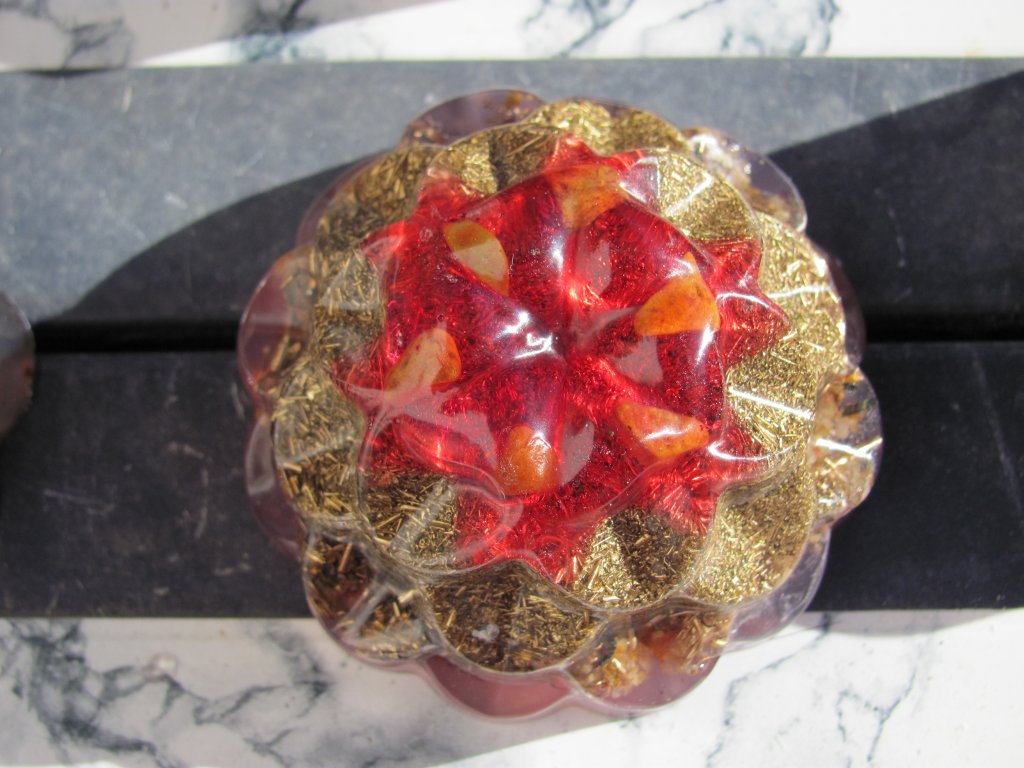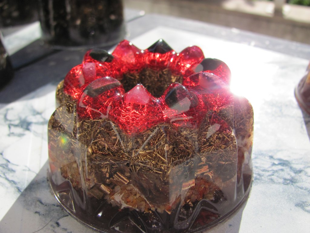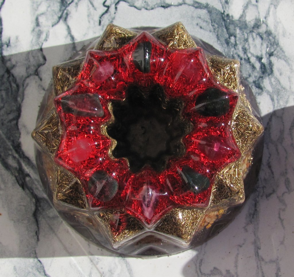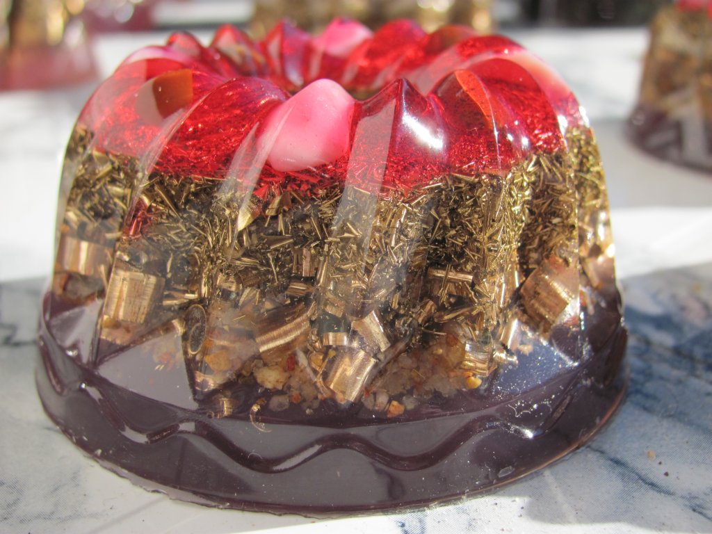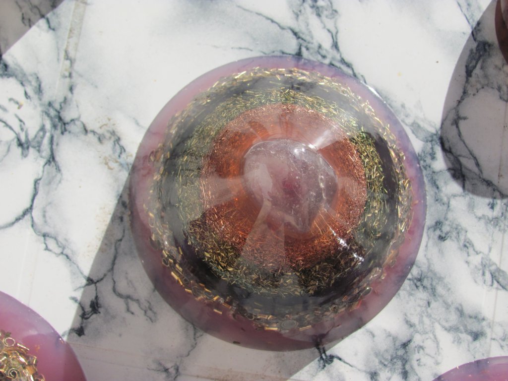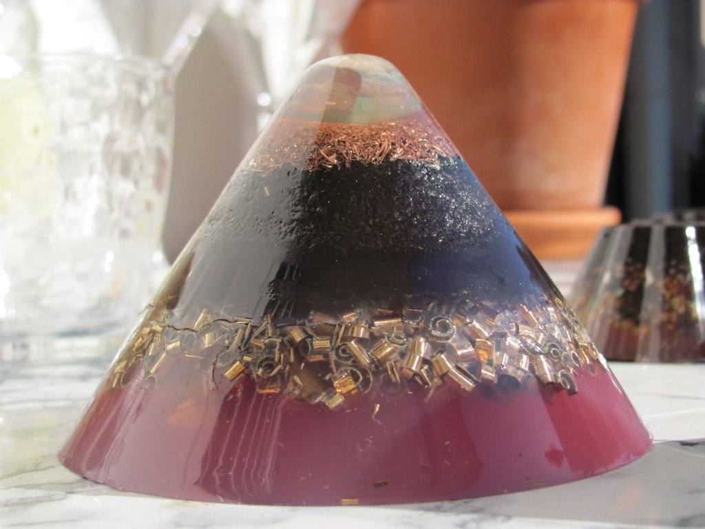 Posebnu pažnju sam posvetio izradi HHG-ova koje sam izradio u više slojeva: prvi sloj je samo kristal i smola. Drugi sloj je bakar i mesing prah ili prah od gize i zatim sam namjerno ostavio 'bufer' zonu čiste smole od 1 cm i utaknuo špice gorskog kristala s zalijepljenim posrebrenim botunima koji daju posebnu vibru srebra energetskom outputu orgona. Drugi dan sam nalio završni sloj s krupnim metalom koji je tako završio na dno HHG-a (kad se okrene) zajedno s obaveznim SSB zavojnicama koje usmjeravaju tok orgona put gore i horizontalno. Ako se želi dobiti čista i fina granica između slojeva metala u HHG onda se mora raditi postupno, odnosno naliti sloj po sloj, čekati da se osuši i stvrdne pa dalje, zato ovo može biti dosta naporno, naročito zimi kad poliesterskoj smoli treba i par sati da se stvrdne. Mislim da sam ove HHG-ove napravio u dva dana.
