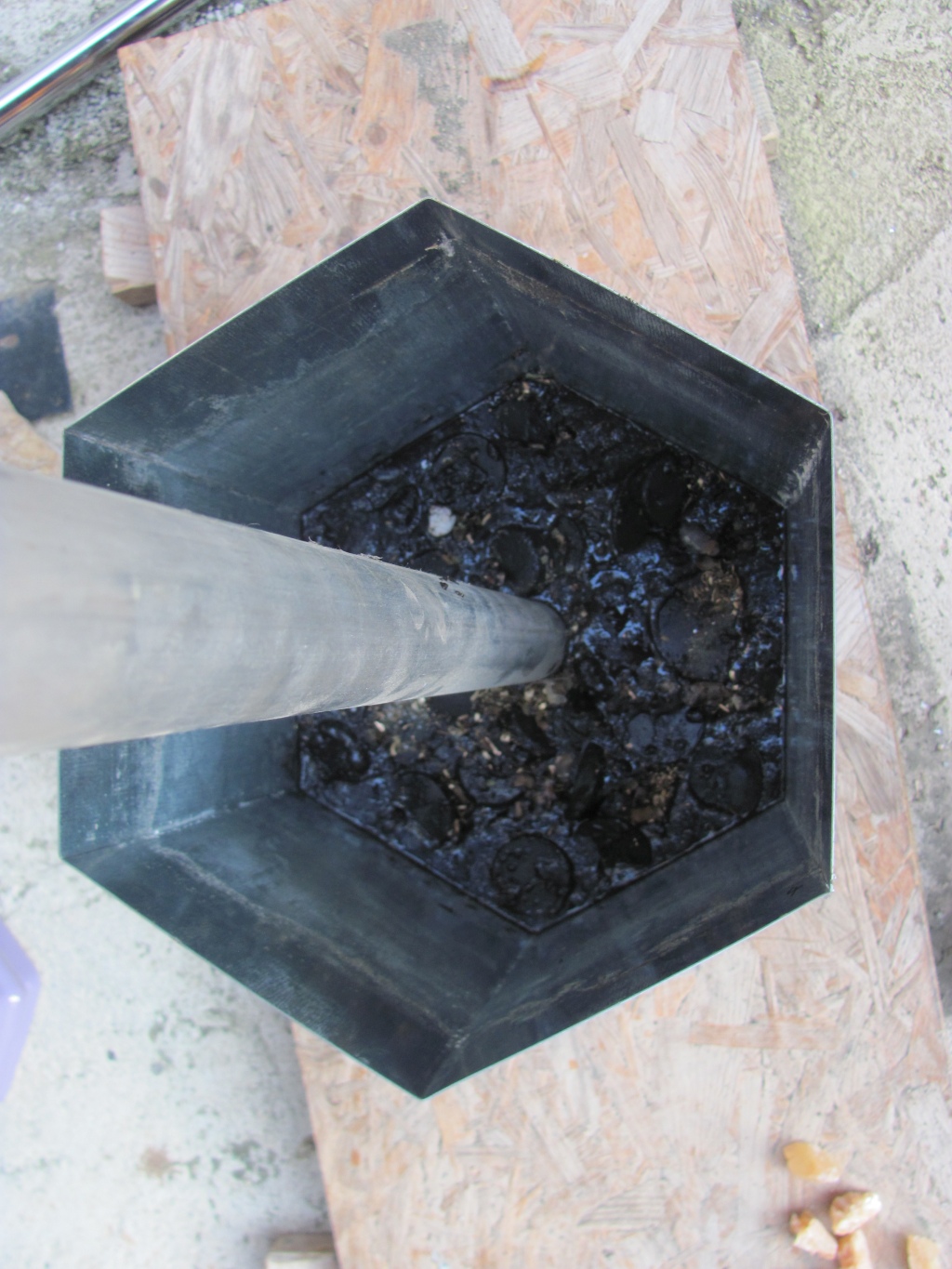 Ljubo je našao još jedan fini hexa kalup, pitar za cviće, pa smo i njega iskoristili, nažalost nakon što se orgonit stvrdnio, kalup je razbijen. Tih dana je bio opsjednut hexa oblikom i stvarno, orgonit izrađen u jednoj od sveto geomtrijskih formi tipa piramida, kugla ili hexa je uvijek jači u izboju pozitivne orgonske energije nego kad je u obliku običnog diska ili nekoj drugoj formi. I tako je u par dana nastalo više haubica koje su danas (pišem ovo ljeta godine zemaljske 2019) još aktivne i angažirane za zaštitu dvije kuće i okučnice, tj. vrtla.