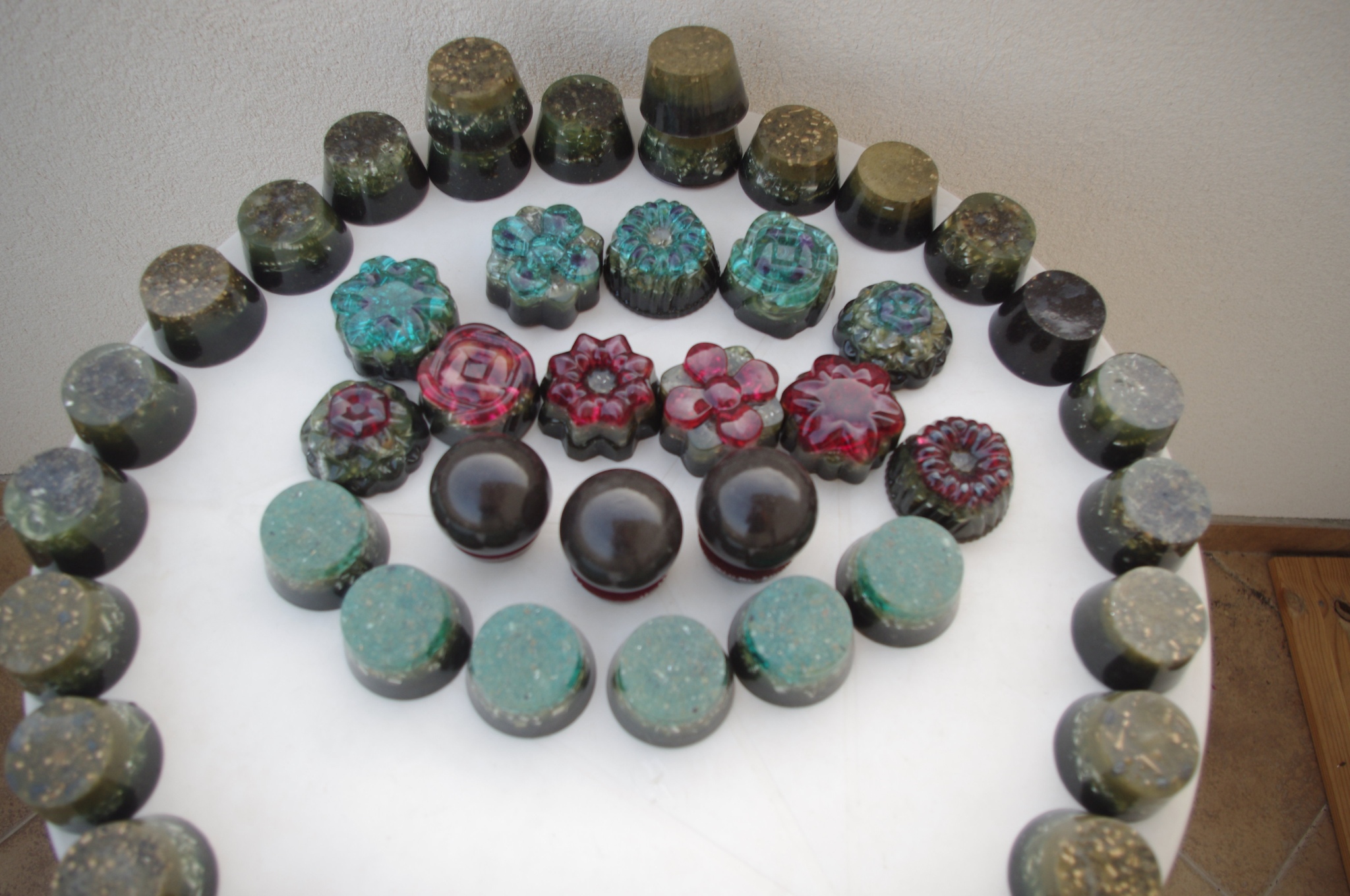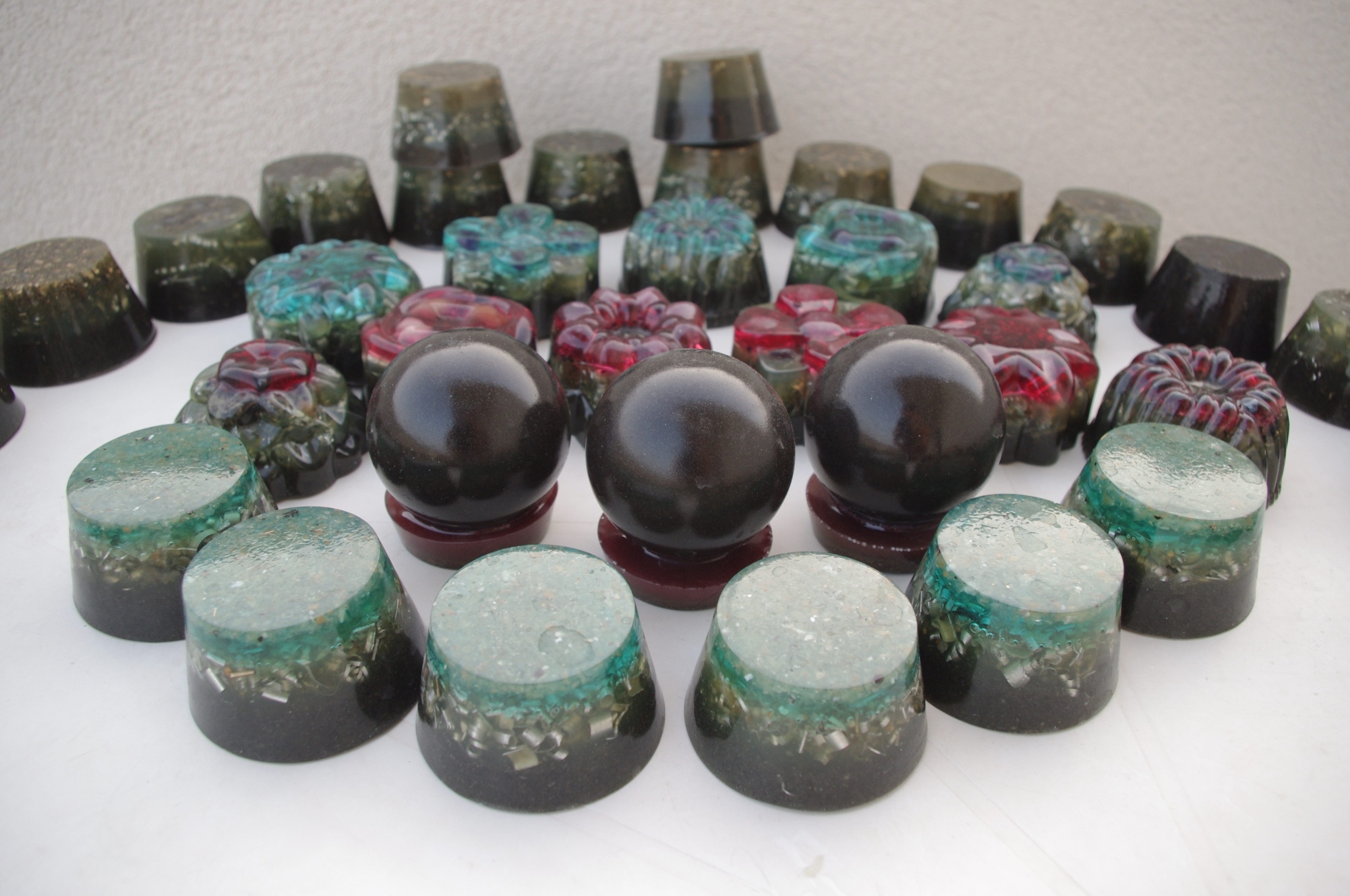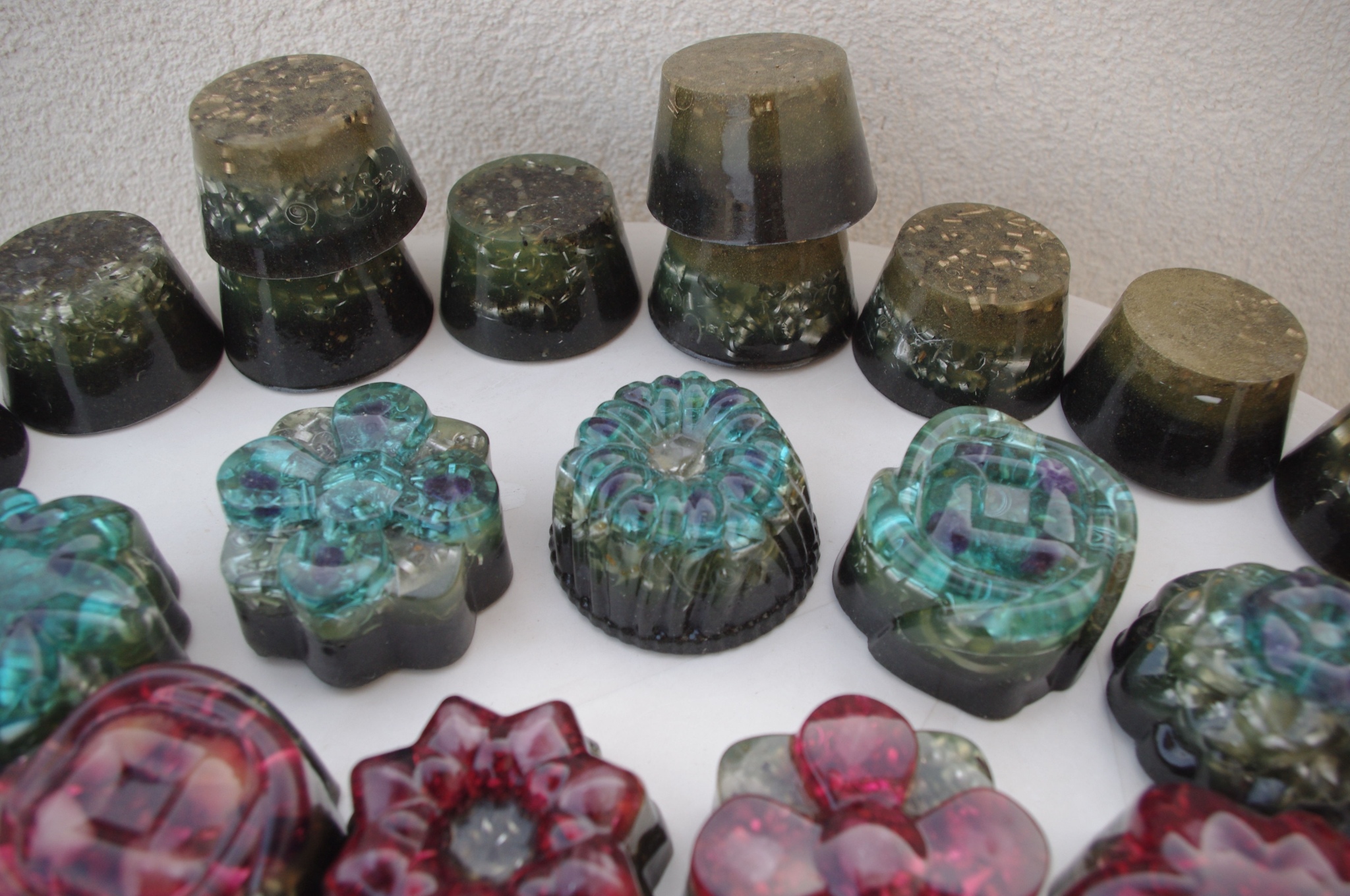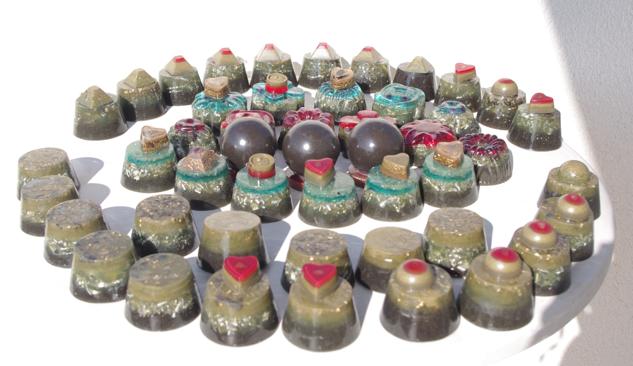 Tog ljeta 2017.g. sam očigledno 'namirisao' zov svojih orgonita jer sam se opet vratio ispod svojih maslina i počeo praviti orgonite, piramide, privjeske i ostale male dobre nositelje pozitivne intencije i vibracija. Izrada orgonita je poput odlaska na sveto mjesto, put k višem stanju svijestu, put otvaranja srčane čakre, bar je to moj osječaj. To i nije čudno kad se čovjek nađe okružen svim tim kristalima, poklonima Majke Zemlje, koje opet na neki vraćam njoj ukalupljene u orgonite i dobrim ljudima koji znaju prepoznati i cijeniti taj poklon.