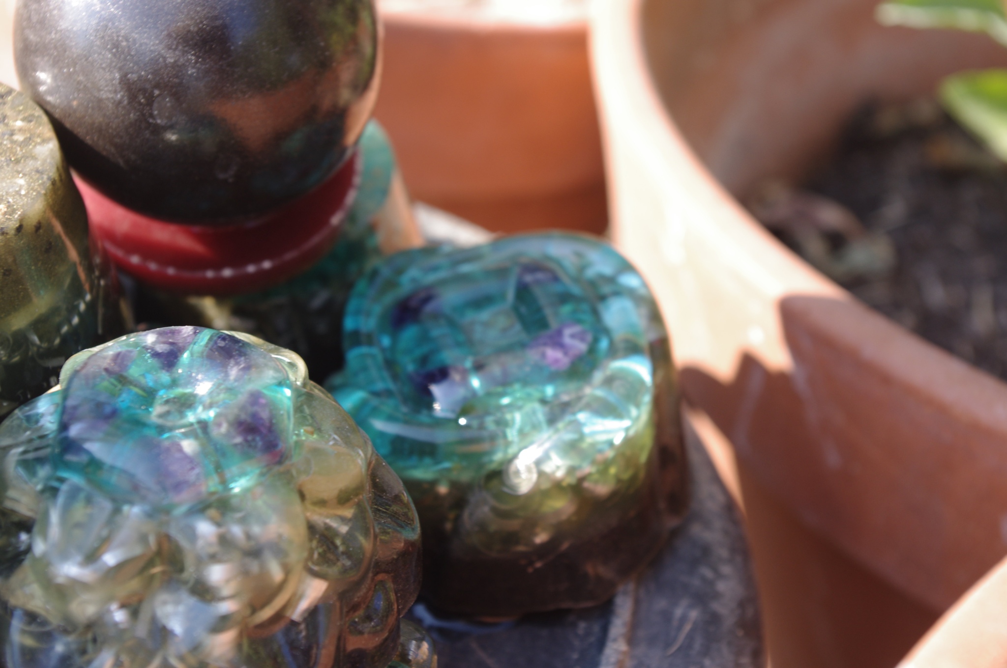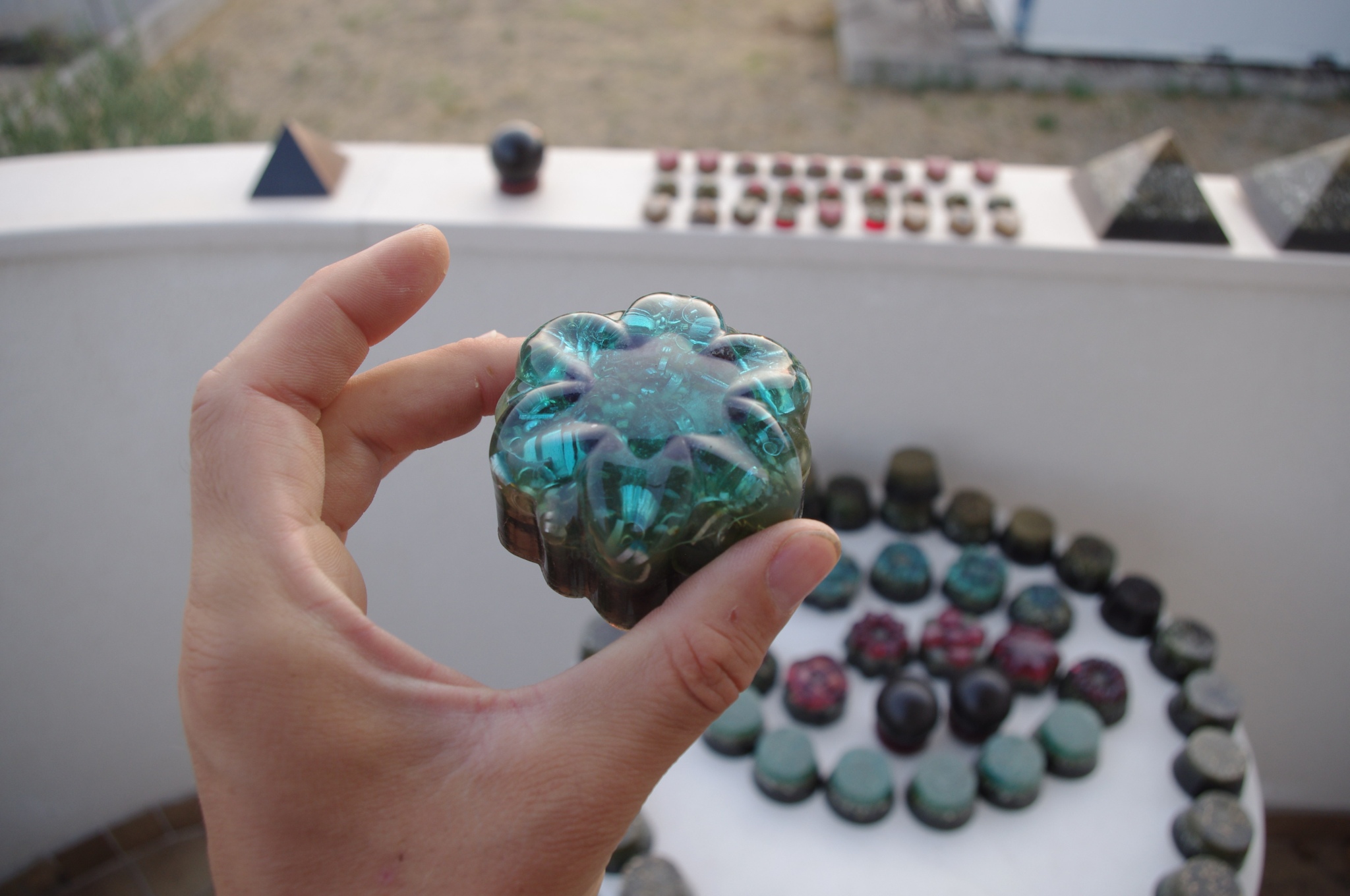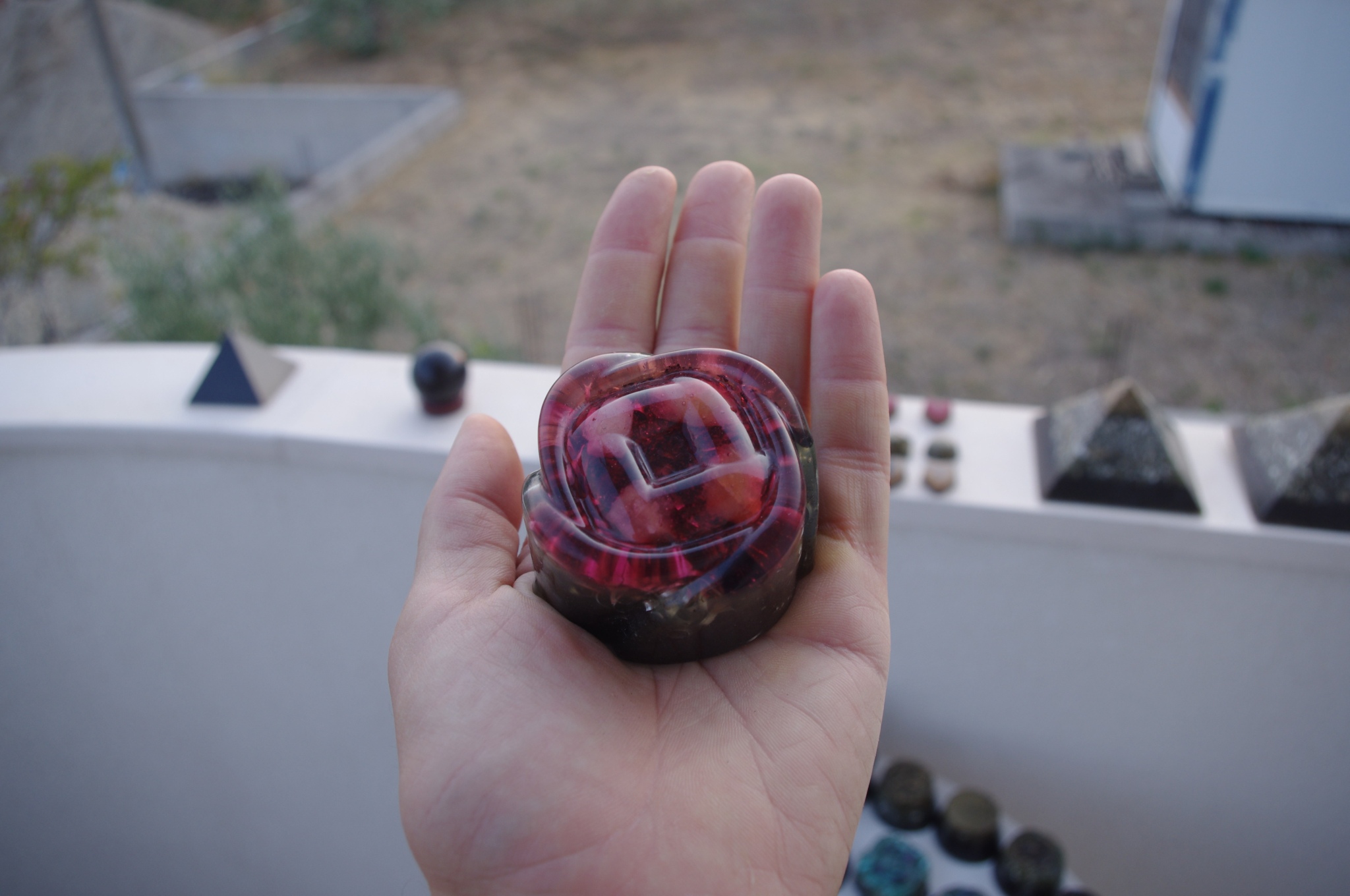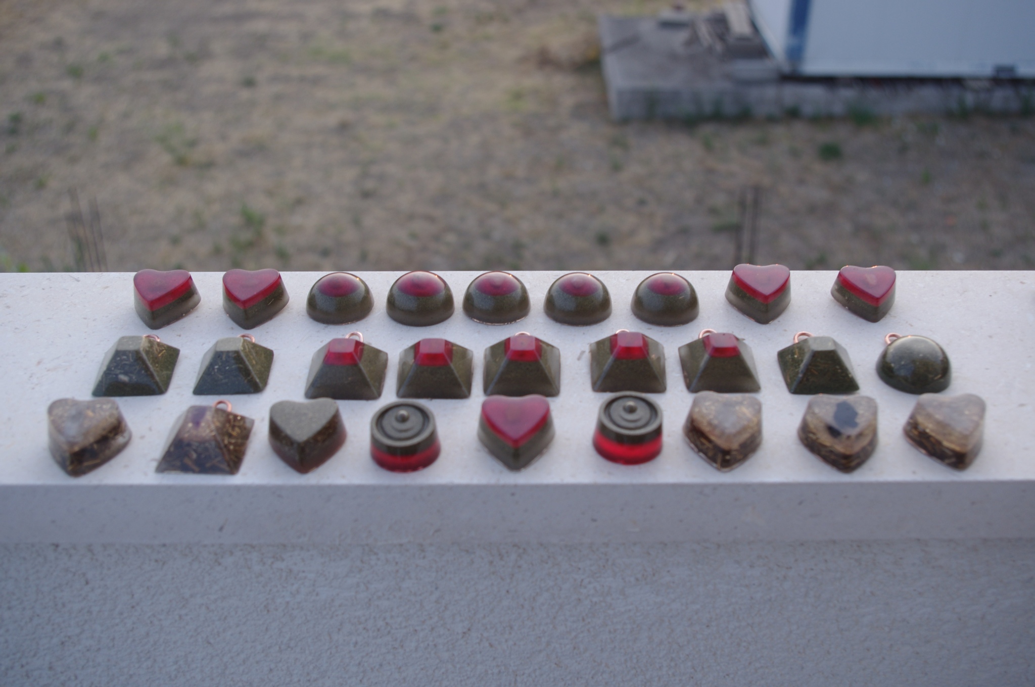 Tog ljeta 2017.g. sam očigledno 'namirisao' zov svojih orgonita jer sam se opet vratio ispod svojih maslina i počeo praviti orgonite, piramide, privjeske i ostale male dobre nositelje pozitivne intencije i vibracija. Izrada orgonita je poput odlaska na sveto mjesto, put k višem stanju svijestu, put otvaranja srčane čakre, bar je to moj osječaj. To i nije čudno kad se čovjek nađe okružen svim tim kristalima, poklonima Majke Zemlje, koje opet na neki vraćam njoj ukalupljene u orgonite i dobrim ljudima koji znaju prepoznati i cijeniti taj poklon.