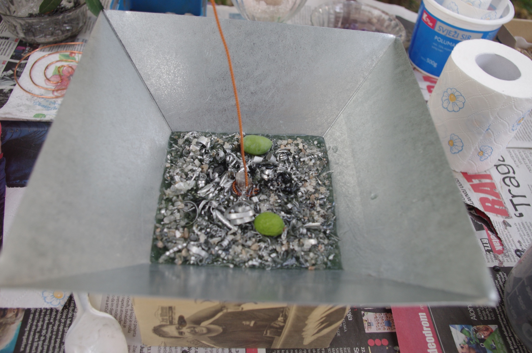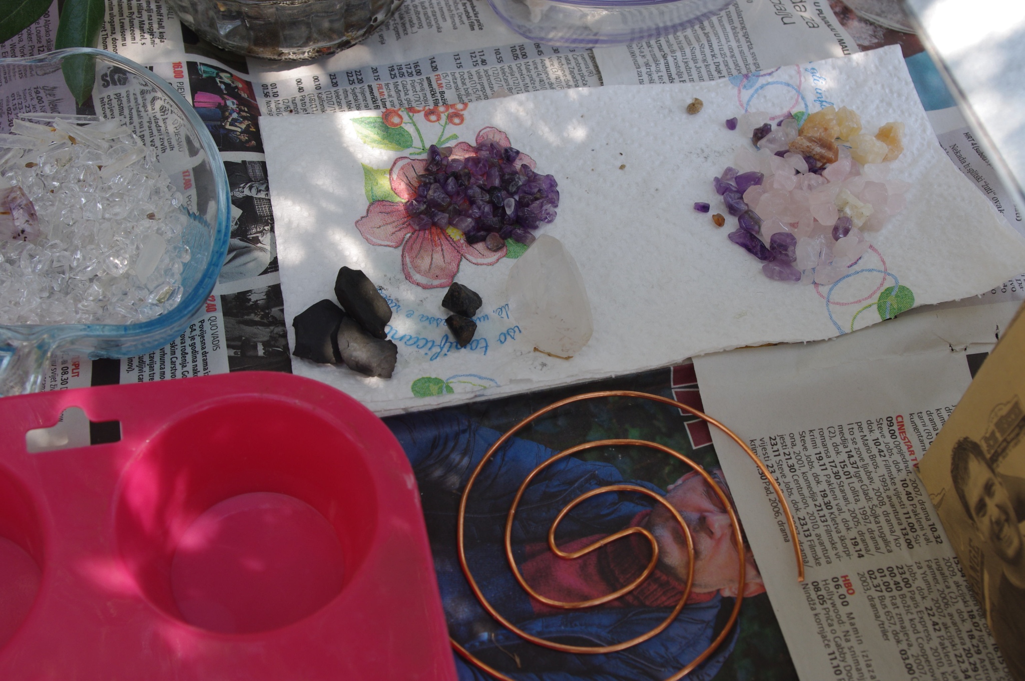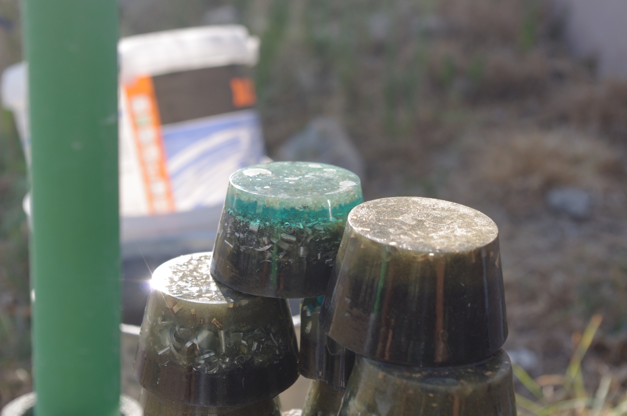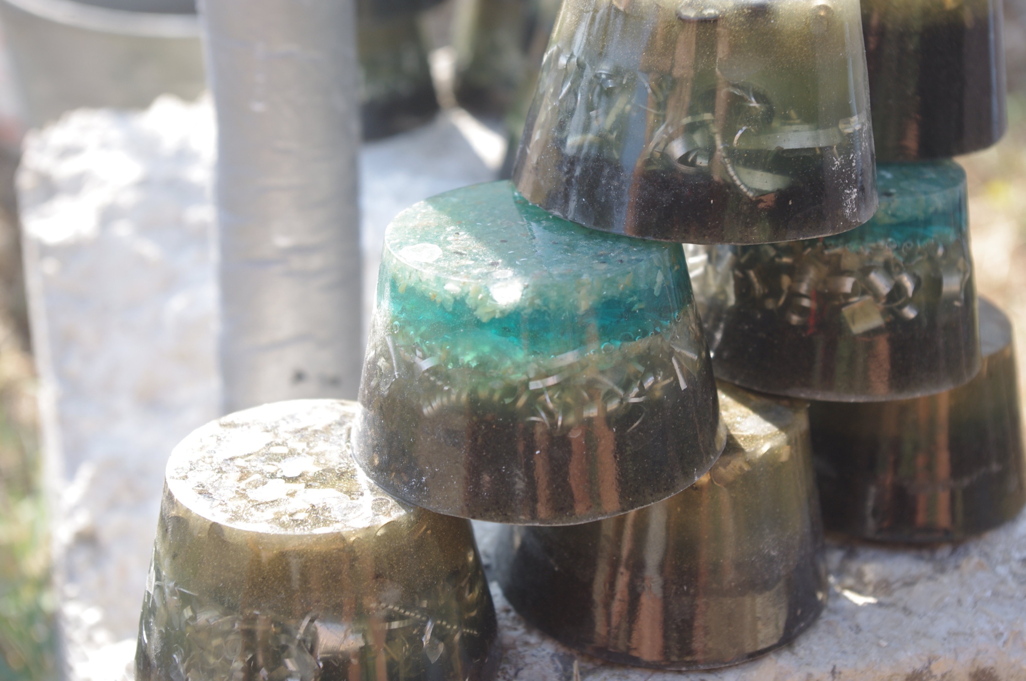 Tog ljeta 2017.g. sam očigledno 'namirisao' zov svojih orgonita jer sam se opet vratio ispod svojih maslina i počeo praviti orgonite, piramide, privjeske i ostale male dobre nositelje pozitivne intencije i vibracija. Izrada orgonita je poput odlaska na sveto mjesto, put k višem stanju svijestu, put otvaranja srčane čakre, bar je to moj osječaj. To i nije čudno kad se čovjek nađe okružen svim tim kristalima, poklonima Majke Zemlje, koje opet na neki vraćam njoj ukalupljene u orgonite i dobrim ljudima koji znaju prepoznati i cijeniti taj poklon.